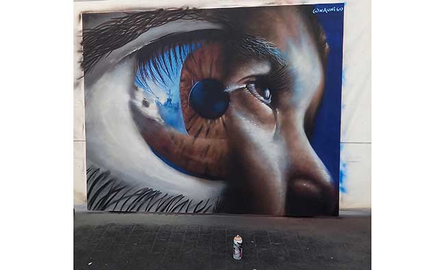 El artista grafitero Nauni69, procedente de Almería, ha resultado ganador de la IV edición del Concurso de Arte Urbano ‘Adiós?’ con un premio de 1.250 euros, gracias a su obra ‘Si veis solo con los ojos sois ciegos y a mí nunca me veréis’. Nauni69 explicaba a Adiós Cultural, organizadora del concurso patrocinado por Funespaña, “no podemos hablar sin ver el siguiente paso, disfrutemos de este y veamos el próximo cuando pasemos al siguiente paso, entonces entenderemos por qué se nace, por qué se llora, se ríe, se enferma, se cura, se muere… veremos a ver”.