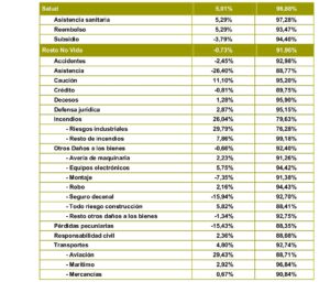 A continuación, se ofrece la evolución de los diferentes ramos: