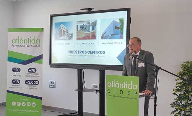Atlántida Formación quiso conmemorar el pasado 29 de noviembre su 24 aniversario (1998-2022) a la vez que inauguraba de la mano del gerente de la compañía, Leonardo Marín, su nuevo centro de formación en Granada, Atlántida CIDEP 3, en un acto en el que se dieron cita empresas colaboradoras y amigos, además de contar con la visita del Excmo. Alcalde de Granada, Francisco Cuenca Rodríguez, junto a otros concejales. El edil ofreció una charla sobre los proyectos de futuro que acoge la ciudad y la provincia de Granada.