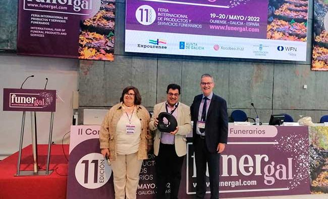 El premio fue entregado por Carmen Olmeda, de La Guía Funeraria, y por Ruud Van Beurden, Director General de Funeral Products Spain, ya que el galardón es una urna de la firma holandesa.