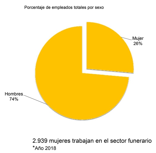 La presencia de las mujeres en el sector funerario se sitúa en el 26,41%. Un dato muy similar al de 2016 y, por tanto, muy positivo ya que hace unos 10 años su presencia era insignificante.