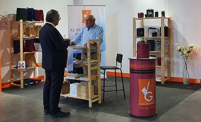 En Funermostra acudía con su amplio catálogo, entre el que destacaban como novedad las bolsas de yute, una fibra vegetal ecológica, muy resistente, que se usa en múltiples actividades, desde la fabricación de alfombras, o de tejidos para la casa y la tapicería, hasta la producción de papel para fines industriales. Una vez cosechado el yute, se procesa la fibra y se transforma en hilado y después se teje. Las telas producidas se usan después en la fabricación de bolsas de yute. Estas bolsas suelen tener un color amarillento, pero se pueden teñir y adaptar a los gustos de los consumidores. Hay diferentes calidades de telas, desde tejidos fuertes y un tanto rígidos hasta telas más suaves con un punto más pequeñito.