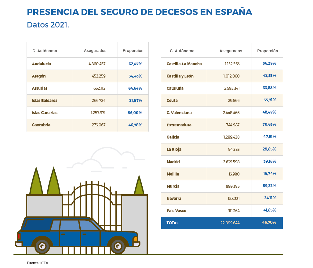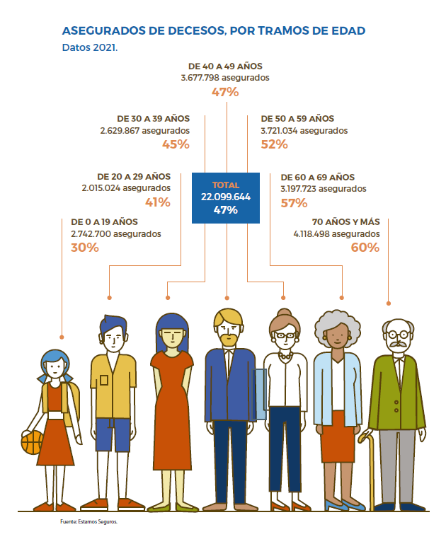 Uno de los bloques de la memoria hace un repaso a la impronta social del seguro, dado que la vocación de las aseguradoras es proteger a las personas y su patrimonio. De acuerdo con la Memoria social del seguro, el seguro de vida pagó 1.297 millones de euros para indemnizar fallecimientos en 2021. También es destacado el papel del seguro de decesos en la organización de los sepelios. Tras el seguro del automóvil, esta es la cobertura con un mayor número de asegurados en el país.
