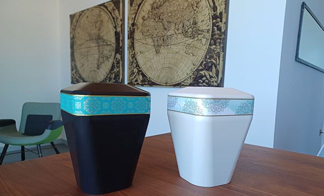 El modelo más económico es la urna ‘blanco nieve’, de líneas sencillas y sin ningún elemento decorativo y una agradable textura. Y a partir de ahí, la urna se ofrece también en diferentes colores y con cenefas decorativas con motivos validados por expertos en duelo.
